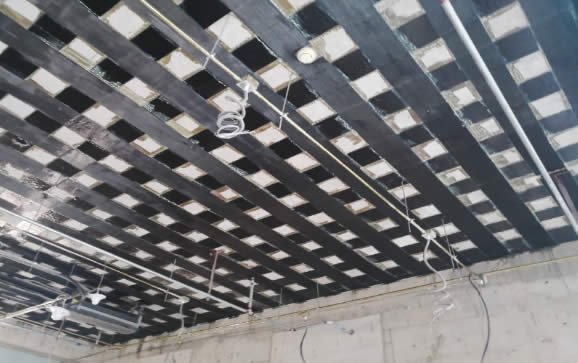 5.采用碳纖維加固法加固施工后,裝飾施工時無須處理界面,只在碳纖維片材施工較后工序時灑砂粘貼即可。